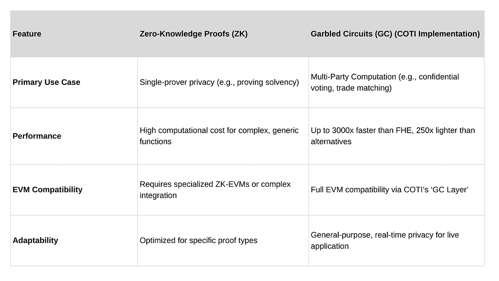 COTI comparado a ZK Proof