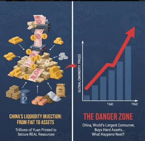 Quando a China inunda o mercado com liquidez, ela não fica apenas nos bancos—ela se espalha por ativos tangíveis.