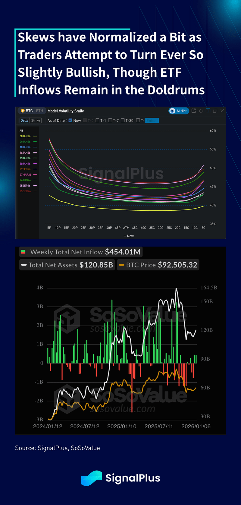 Os viéses de chamadas melhoraram nos últimos dias, particularmente em relação ao nível de $100k, à medida que os traders estão ligeiramente construtivos sobre o BTC, mas permanecem cautelosos, já que os fluxos de ETF continuam letárgicos desde novembro. A atividade está calma de outra forma, enquanto os mercados aguardam um catalisador mais convincente para nos tirar da faixa de 87–95k que persiste desde novembro. Boa sorte e bons negócios.