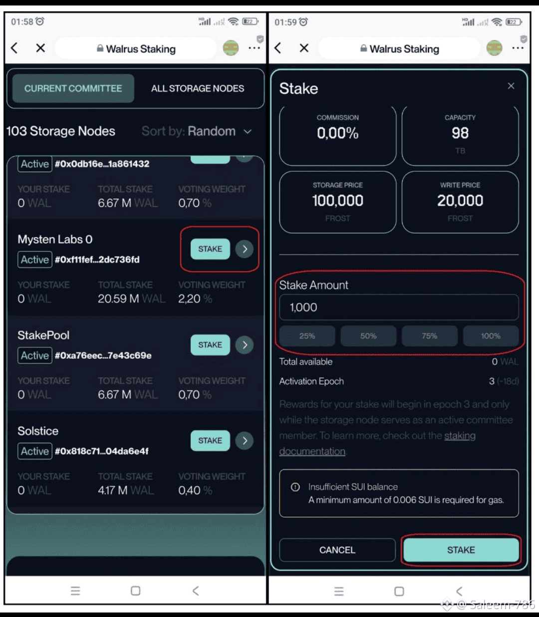 The staking dApp itself reinforces this mindset. You don’t just stake into a pool and forget about it. You see storage nodes. You see which ones are currently in the committee. You can stake to nodes that aren’t in the committee yet, knowing that you’re influencing future epochs rather than chasing immediate results.
