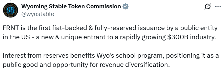 A Comissão de Stable Token de Wyoming planeja escalar o FRNT ao longo de 2026, integrando parceiros de revenda adicionais, implantando o token em outras agências estatais e trabalhando com entidades públicas interessadas em lançar suas próprias stablecoins.