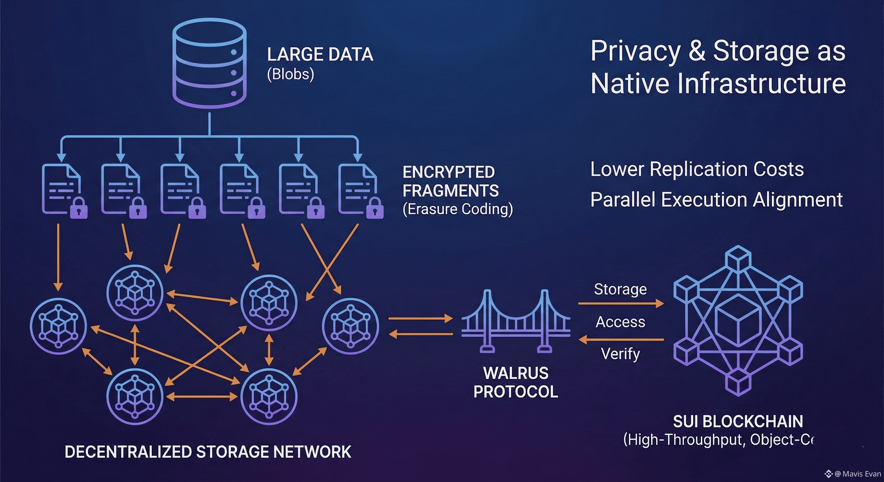 At the protocol level, Walrus uses erasure coding to break large files into fragments that are distributed across a decentralized network, reducing single-point failure while lowering replication costs. Blob storage allows data to be handled as composable objects aligned with Sui’s object-centric model, which limits bottlenecks during parallel execution. WAL functions as the settlement layer for storage allocation, access permissions, and staking, creating economic pressure to keep data available and verifiable. Privacy is not bolted on. It is embedded into how blobs are addressed, retrieved, and authorized, enabling applications to operate on encrypted datasets without leaking metadata.