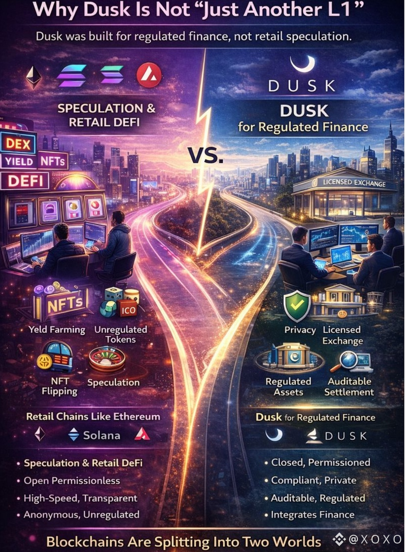 What is quietly happening is that crypto is splitting into two worlds. One is high-speed speculation and consumer DeFi. The other is institutional, regulated, and asset-backed finance. Dusk is positioning itself to be the backbone of the second world.