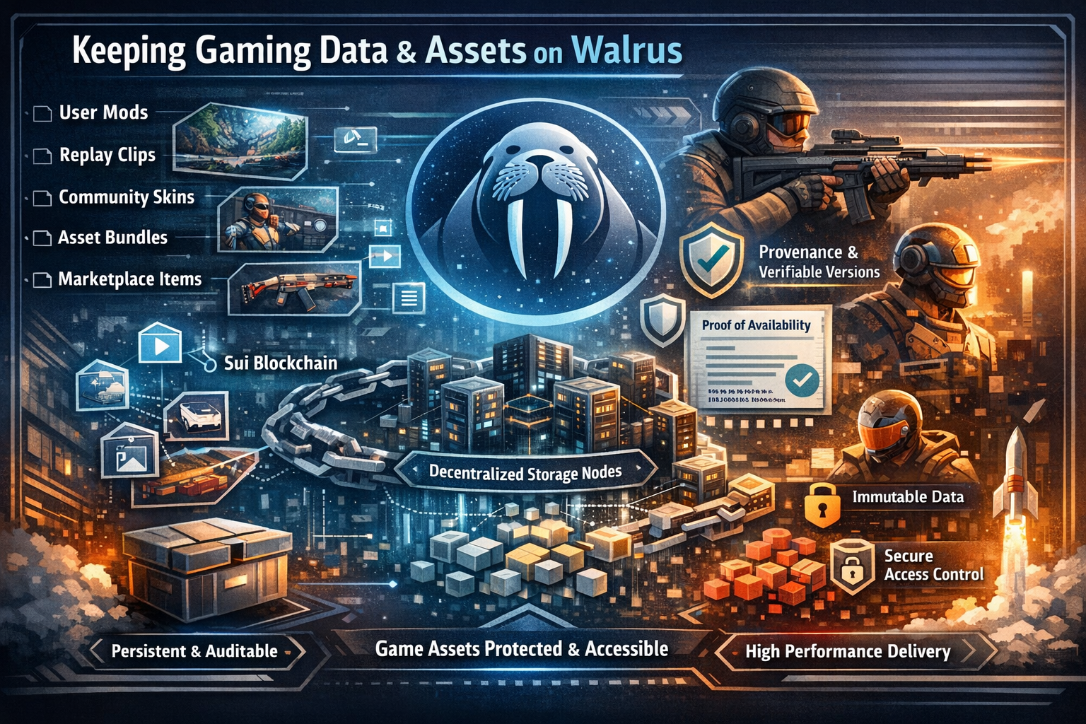 @Walrus 🦭/acc Para a maioria das equipes de jogos, "dados" não é uma expressão vazia. São a camada ativa que mantém um mundo coerente: texturas, áudio, pacotes de atualizações, arquivos de regras anti-trapaça, gravações de jogadores, imagens da loja, skins da comunidade e pequenas alterações de configuração que silenciosamente impedem o erro de ontem. Durante anos tratamos isso como infraestrutura, alugada de um bucket na nuvem e um CDN, invisível até que algo vazasse. Agora a infraestrutura molda o próprio jogo. Os jogadores esperam persistência, os criadores esperam que seu trabalho dure além de uma temporada, e os editores cada vez mais querem rastros auditáveis que possam defender caso algo seja questionado. Essa mudança é emocional tanto quanto técnica. Ninguém quer dizer a uma comunidade que uma década de criações desapareceu porque um link apodreceu.