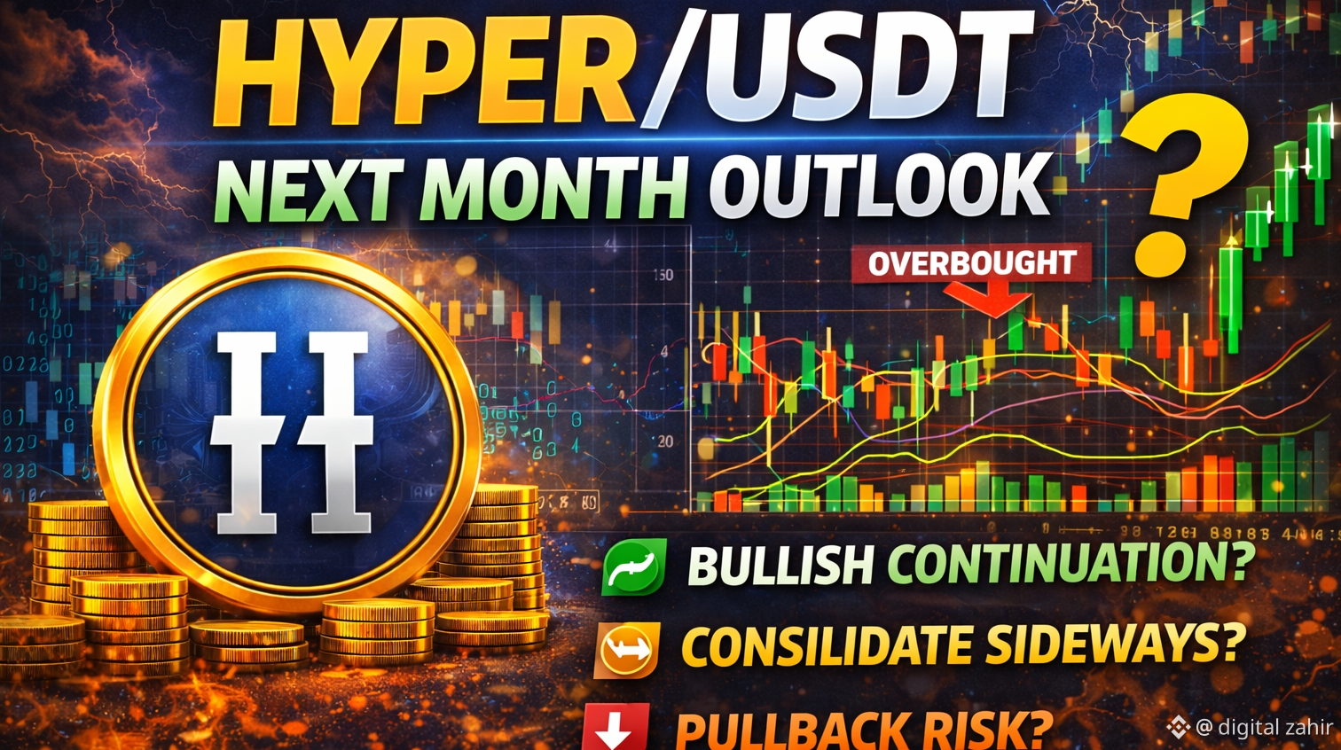 É esperado que o HYPER/USDT permaneça volátil nos próximos meses, com uma tendência ligeiramente alcista a neutra. Indicadores técnicos sugerem que o momentum ainda é positivo, mas o ativo mostrou condições de sobrecompra, aumentando a probabilidade de correções de curto prazo ou consolidação lateral antes de qualquer movimento forte. Uma continuação alcista é possível apenas se o volume permanecer forte e o mercado cripto em geral permanecer favorável; caso contrário, o preço pode ficar em faixa ou recuar até os principais níveis de suporte.