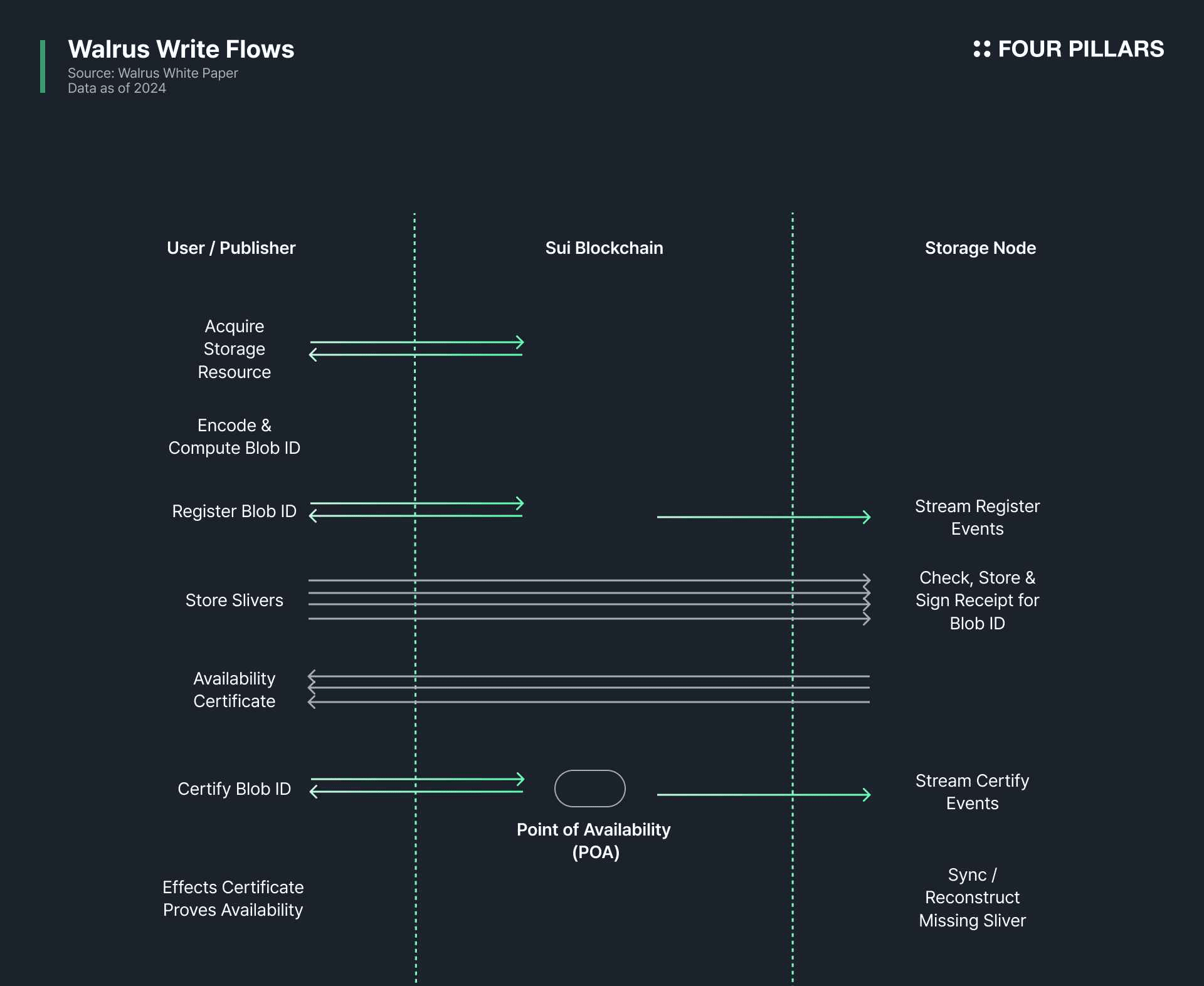 Uma característica técnica definidora do Walrus é seu uso de armazenamento em blob combinado com codificação de exclusão. Arquivos grandes são divididos em múltiplos fragmentos, codificados com redundância e distribuídos entre muitos nós de armazenamento. Mesmo que alguns nós fiquem offline ou falhem, os dados originais ainda podem ser reconstruídos. Essa abordagem fornece fortes garantias de durabilidade e disponibilidade enquanto usa significativamente menos sobrecarga de armazenamento do que a replicação simples, mantendo os custos previsíveis e eficientes.