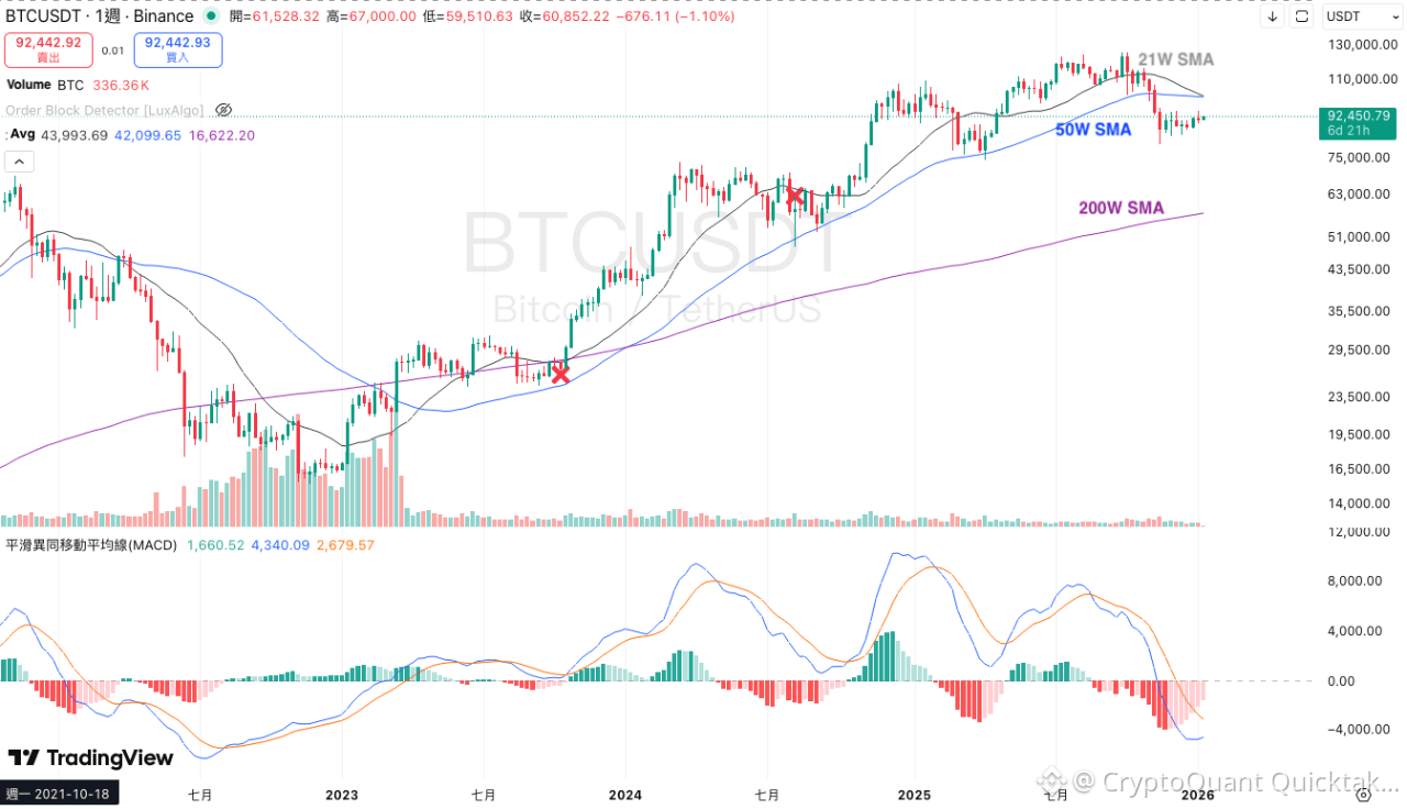 - Technical Breakdown: BTC has lost the 21-week and 50-week SMAs (both above $101K), signaling a structural shift to the downside. A looming "Death Cross" (21-week x 50 week )and a bearish weekly MACD suggest selling pressure is far from over.