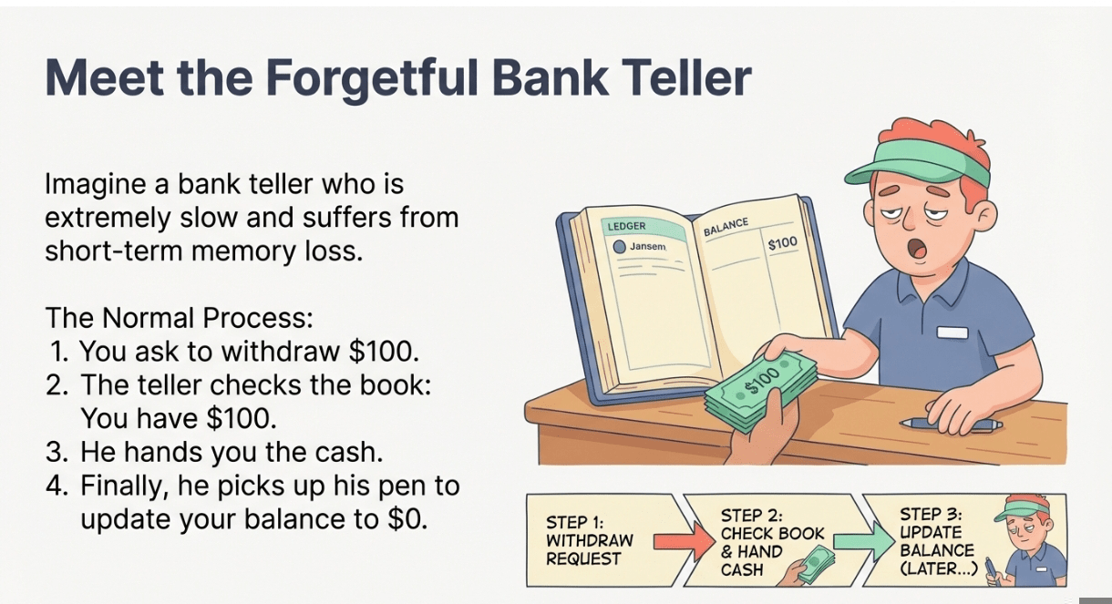 Cara, imagine que você vai a um banco onde o caixa é extremamente lento e tem perda de memória de curto prazo.