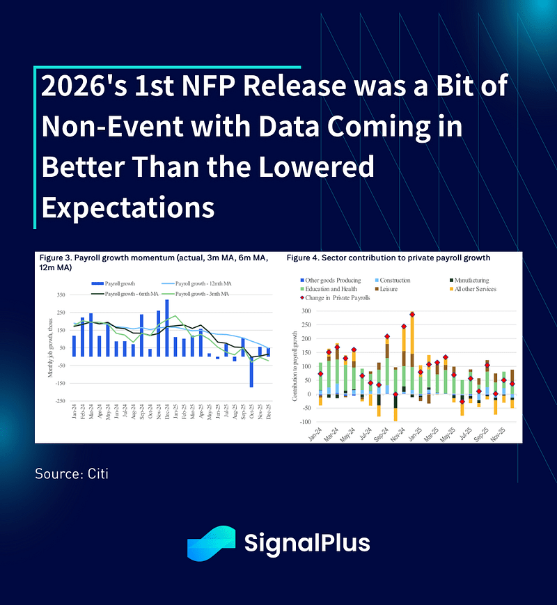 Isso está acontecendo enquanto os dados mais recentes de emprego mostram que os EUA permanecem em um cenário de crescimento semelhante ao de um 'goldlock', com números de trabalho mornos apoiando a postura de política monetária (já) fácil, e a crença na desvalorização fiduciária mantendo os ativos em um 'platô permanentemente alto'. Uma perda de 50k na manchete do NFP foi compensada com uma taxa de desemprego decente de 4,4%, e um sólido aumento nos ganhos horários médios para 3,8% ano a ano.