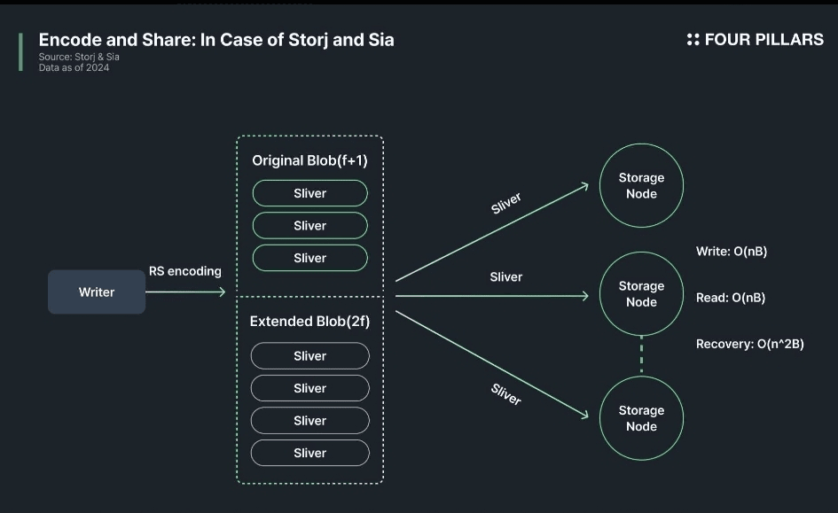 Na extensibilidade, o Walrus processa 1,18 TB de elementos de fragmentos centrais ao longo de 60 dias, com P90 em 1,08 TB, e 221,5 GB de detalhes meta, P90 46,34 GB. De acordo com o esboço, cada nó fornece de 15 a 400 TB. O total excede 5 PB, uma característica vital do Walrus. Ilustrações revelam escalonamento de capacidade com a expansão do comitê, afirmando o crescimento proporcional ao número de nós. Para conexões, a resistência à supressão no armazenamento e na propagação de dados alimentou tendências P2P iniciais e ênfases não centrais. Academicamente, Eternity em '96 visava prevenir o desaparecimento de conteúdo. Na prática, Napster, Gnutella, Free Haven e os primeiros Freenet usaram links não estruturados para retenção, caminhos e provisão, principalmente arquivos. Eles aplicaram métodos centrais ou de inundação para buscas; cópias completas em roteadores de resposta. Isso resultou em segurança casual com saída fraca. Mais tarde, o trabalho dos anos 2000 ofereceu P2P estruturado via DHTs: Chord, Pastry, Kademlia, para melhores descobertas e redução de replicação. DHTs funcionam sem consenso ou sincronização completa. Mas são suscetíveis: Sybils identificados aqui; ameaças de roteamento difíceis. Os usos atuais veem ataques. BitTorrent prevaleceu na disseminação, pela simplicidade e incentivos. Inicialmente cópias completas, rastreadores centrais; mais tarde rastreadores Kademlia. Em contraste, o Walrus mantém uma lista de nós completa e consistente via blockchain Sui, com metadados frescos. Assume nós confiáveis para recompensas, baixa rotatividade, alterações baseadas em protocolo. Na era do blockchain, o IPFS oferece armazenamento de arquivos descentralizado, chave para cadeias e dApps. Blocos endereçados por conteúdo, links DHT replicam para hosts. Editores fixam para resistência, pagos. Abaixo, replicação completa em poucos por arquivo. O Filecoin aprimora o IPFS com cadeia, FIL para estimular a manutenção de réplicas. Usuários contratam nós, pagam em cripto. Mitiga quedas via cópias codificadas, desafios. Codificações retardam a regeneração a partir de originais, anti-revezamento. Assim, a recuperação da fonte aguarda a decodificação, a menos que cópias quentes, custo extra sem incentivos. O Arweave corrige o acesso lento com prova de acesso, recompensando grandes holdings. Com replicação completa, aproxima-se dos níveis de SMR. Força armazenamento eterno, pré-pagamento, sem flexibilidade para vida/exclusão, desperdício de capital. Em relação a eles, o Walrus usa códigos de apagamento com 4,5x de baixa sobrecarga, sobrevive a perdas de 2/3, opera com 1/3 fora. Usa Sui para gerenciamento/incentivos, sem própria cadeia. O Storj é outro descentralizado codificado: Reed-Solomon 29/80, 80 partes, 29 recuperados, fator 2,75x.