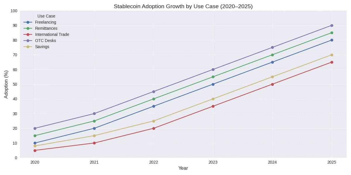 A maioria dos traders não acorda pensando em infraestrutura de pagamento. O preço é alto, as narrativas são altas e a atenção geralmente segue o que é volátil. Mas as stablecoins mudaram silenciosamente o caso de uso do mundo real da cripto muito antes da maioria das pessoas admitir. Você pode ver isso em freelancing, remessas, comércio internacional, mesas OTC e até mesmo no comportamento de poupança do dia a dia em países onde a moeda local parece instável. As pessoas não estão usando stablecoins porque amam blockchain. Elas as usam porque dólares digitais se movem mais rápido que bancos, alcançam mais longe que cartões e funcionam em horários em que o sistema tradicional está fechado.