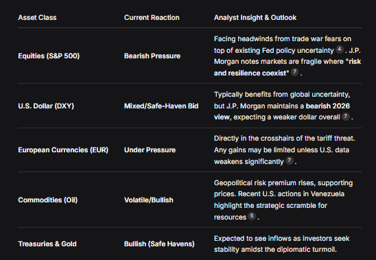 A reação imediata foi um clássico pivô de "risco reduzido". Embora os principais índices como o S&P 500 tenham mostrado resiliência na semana passada, fechando em 6.940 pontos, a nova ameaça introduz um vento contrário poderoso. Os modelos de Economia de Trading agora sugerem um possível retrocesso, com uma previsão de fim de trimestre de 6.766 pontos para o S&P 500.