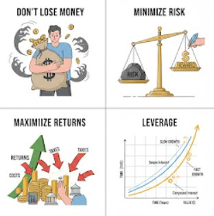 O terceiro pilar é otimizar lucros, mas não da forma que muitos pensam. Eu costumava correr atrás de lucros de curto prazo sem me atentar às taxas, impostos ou frequência de negociação. Mais tarde, percebi que essas coisas que parecem pequenas acabam levando muito dinheiro ao longo do tempo. Manter o dinheiro e deixá-lo no mercado por tempo suficiente, às vezes, é mais importante do que ganhar mais dinheiro novo.