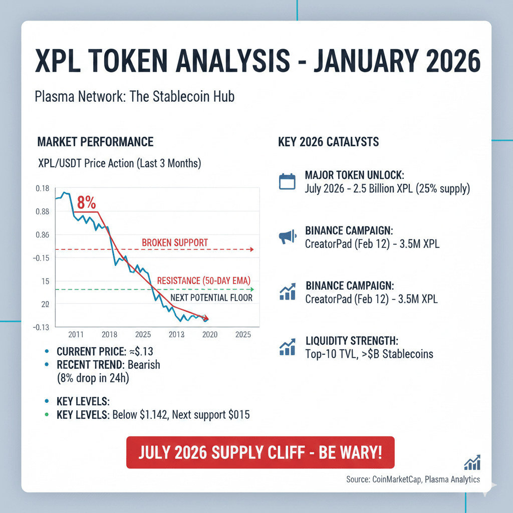 Campanha Binance: Uma campanha contínua do CreatorPad (que vai até 12 de fevereiro de 2026) está distribuindo 3,5M XPL. Embora isso aumente a visibilidade, muitas vezes leva a uma "pressão de venda" de curto prazo, à medida que os recipientes de recompensas liquida seus tokens.