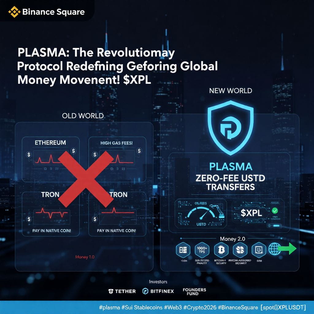 Most blockchains treat stablecoins like any other token, forcing you to pay high gas fees in native coins just to move your own money. Plasma changes the game! Built on a high-performance Layer-1 architecture, it introduces Zero-Fee USDT Transfers. Imagine sending digital dollars anywhere in the world instantly, for FREE. That is the power of the protocol's built-in Paymaster system. 💸✨
