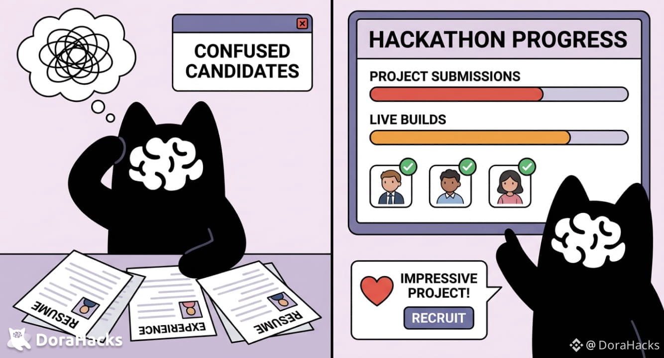 Résumés are fiction. Interviews are theater. In 2026, the smartest companies hire by output, not pedigree. Hackathons are live auditions where the only thing that matters is what you create and how you work under pressure. It's no longer "Tell me about a time you solved a problem." It's "Here's a real problem, show us how you solve it, right now."