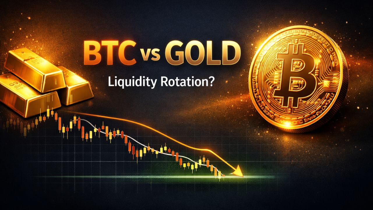 A) BTC/GOLD marca suporte e reage de forma limpa — a rotação para BTC começa a mostrar