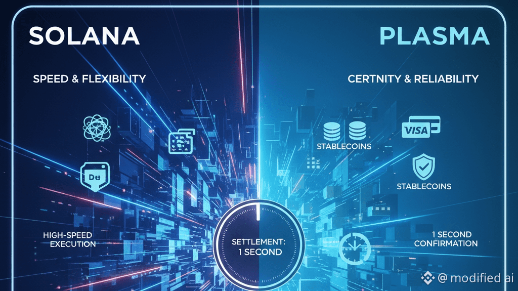 É aqui que a comparação entre Solana e Plasma (XPL) se torna interessante. À primeira vista, eles parecem concorrentes. Na realidade, eles representam duas filosofias muito diferentes que moldam o futuro da infraestrutura cripto.