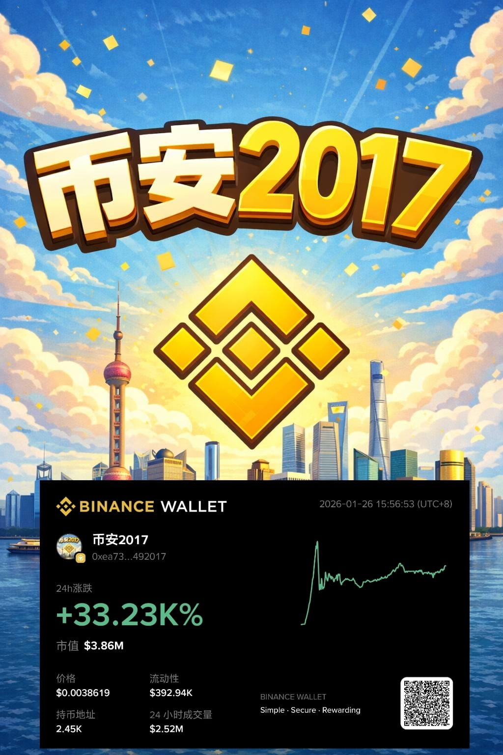 Um novo endereço de carteira criado hoje transferiu 300.000 dólares para começar a comprar continuamente um token meme 'Binance 2017', atualmente a posição de compra já teve um lucro de 50%