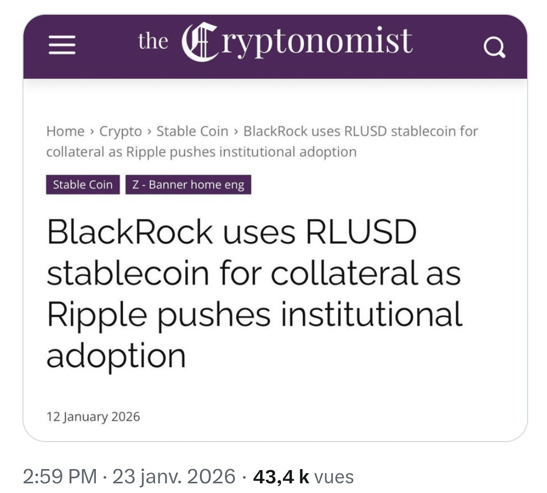 Mesmo que eu não tenha mais XRP, estou acompanhando o setor: através da plataforma Securitize, o stablecoin RLUSD da Ripple agora é usado como liquidez para o fundo tokenizado BUIDL da BlackRock. Quando o maior gestor de ativos do mundo valida uma tecnologia para suas operações reais, ele abre a porta para todas as criptos utilitárias (como LINK).
