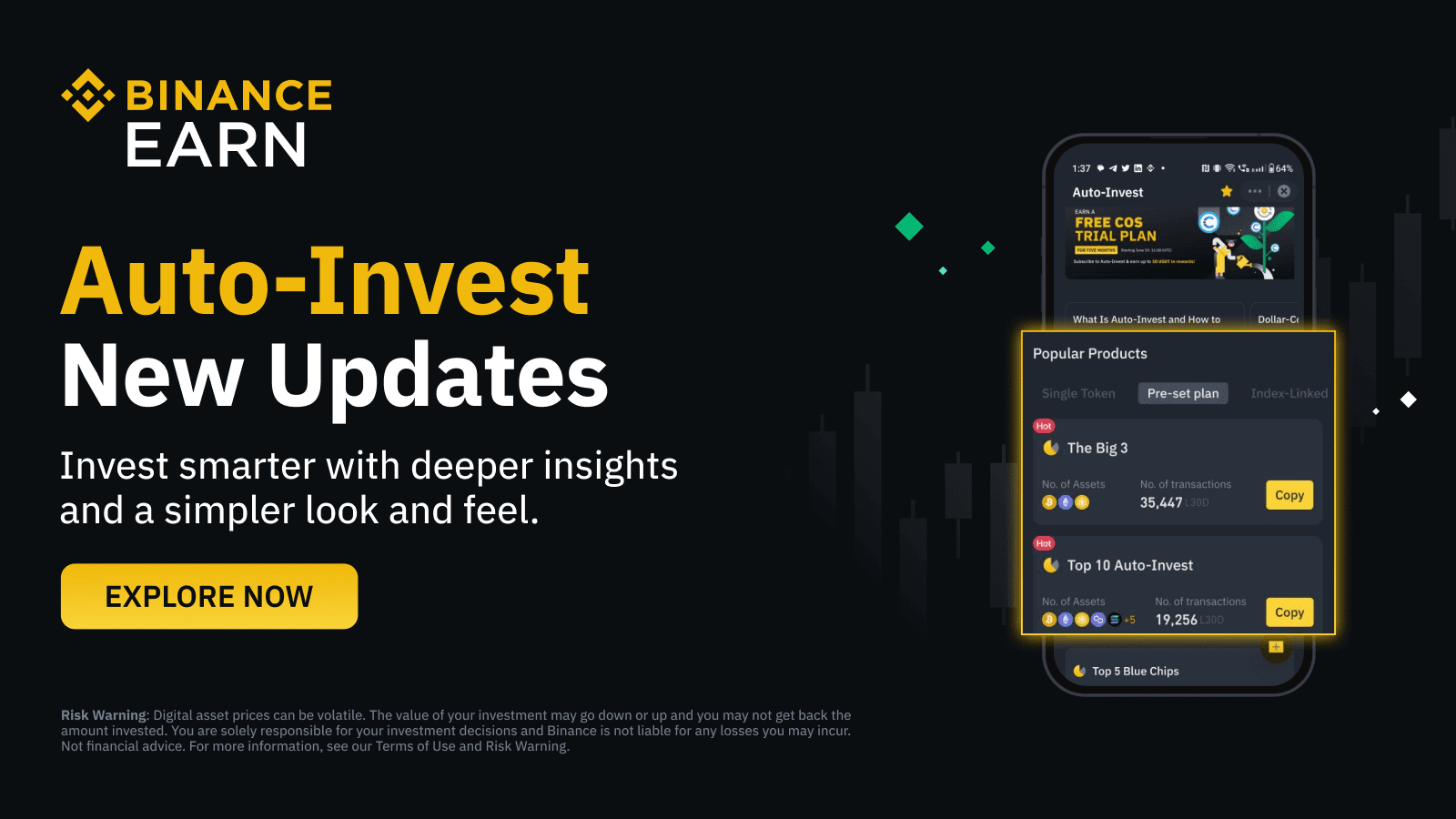 Por que usar Auto-Invest? Ele ajuda a reduzir o impacto da volatilidade em seus investimentos. Ao espalhar suas compras ao longo de semanas ou meses, você está menos propenso a comprar tudo a um preço alto; ele “média” o custo, o que pode levar a um melhor preço de entrada geral, especialmente em um mercado volátil. Essa estratégia é ótima para construir posições fortes a longo prazo, já que você continua acumulando independentemente das oscilações de preço de curto prazo. O Auto-Invest também instila disciplina: você investe consistentemente em vez de deixar as emoções guiarem suas decisões.