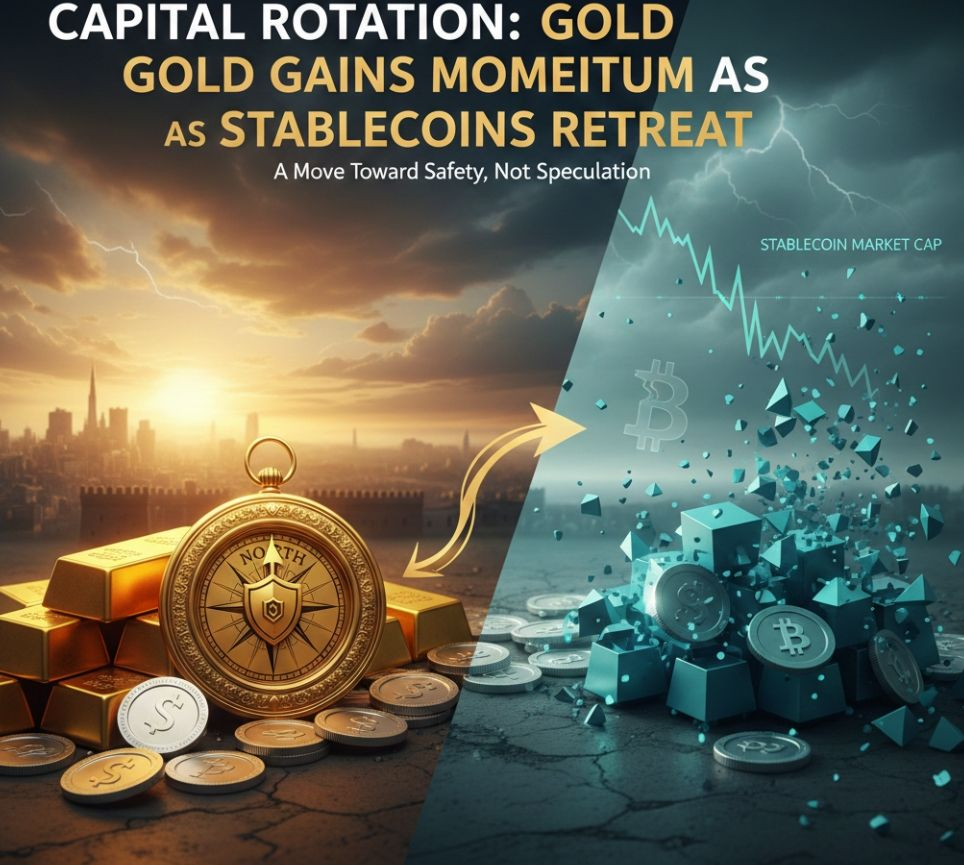 O que me impressiona é como rapidamente o mercado se alterna entre risco e segurança. O capital não está desaparecendo; está migrando. Os detentores de stablecoins estão efetivamente movendo suas posições para refúgios seguros tradicionais, apostando na estabilidade enquanto o cenário macroeconômico permanece instável.