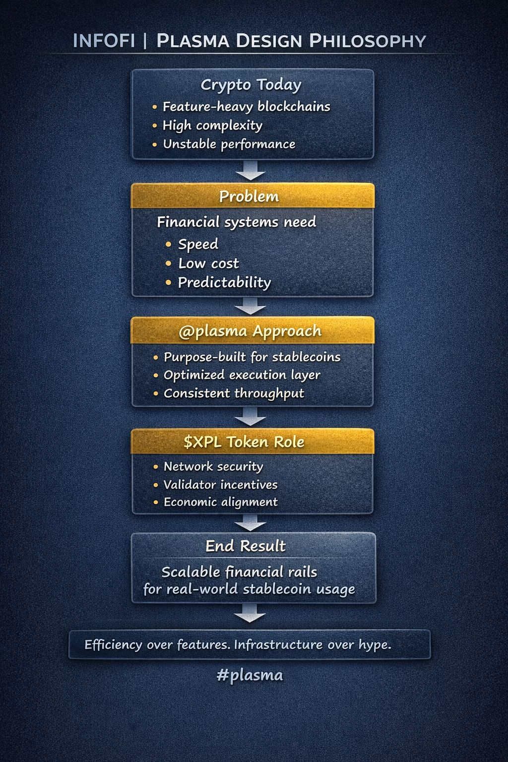 No espaço blockchain, muitas redes competem adicionando mais recursos e apoiando o maior número possível de casos de uso. Embora essa abordagem pareça ambiciosa, muitas vezes leva à complexidade, congestionamento e desempenho inconsistente. Plasma segue uma filosofia diferente. @undefined é construído com um foco claro em uma função crítica: movimento de stablecoins e liquidação financeira.