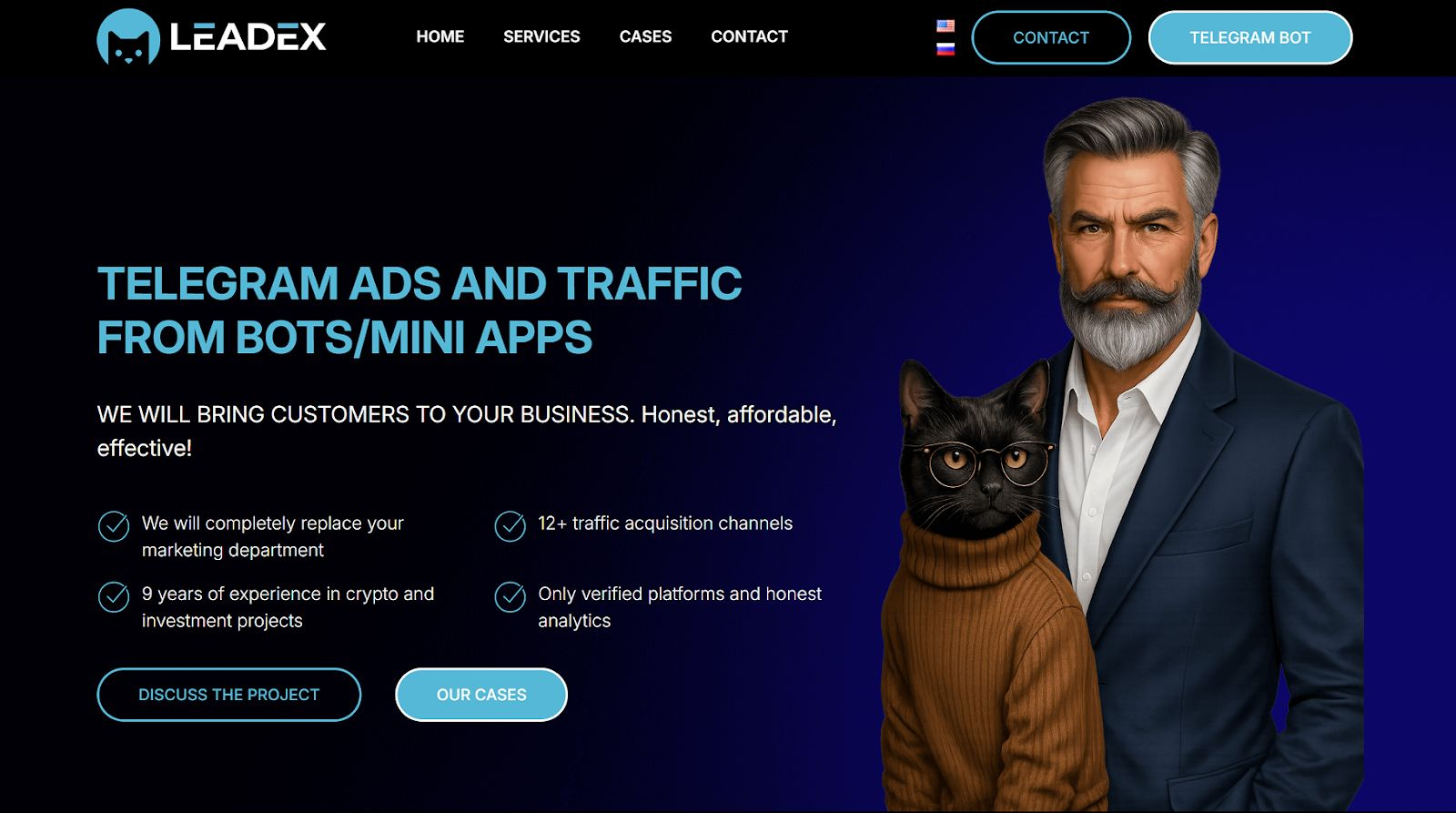 A Leadex é uma agência de marketing de performance especializada em tráfego direcionado, marketing de influenciadores e geração de leads através do Telegram, YouTube, Google e Yandex. A agência ajuda empresas de todos os tamanhos a adquirir usuários e leads de alta qualidade por meio de estratégias orientadas por dados e execução específica de plataformas.