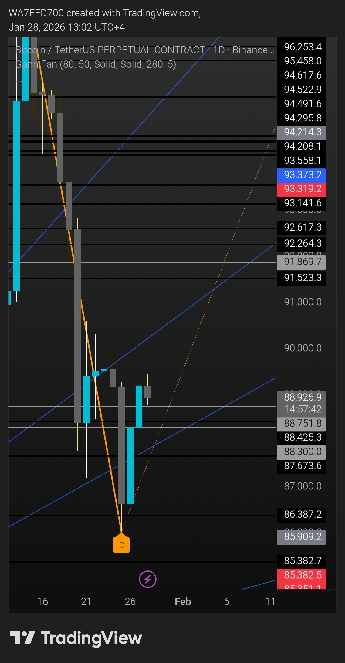 🟢 Gann Fan (Tendência Gann)