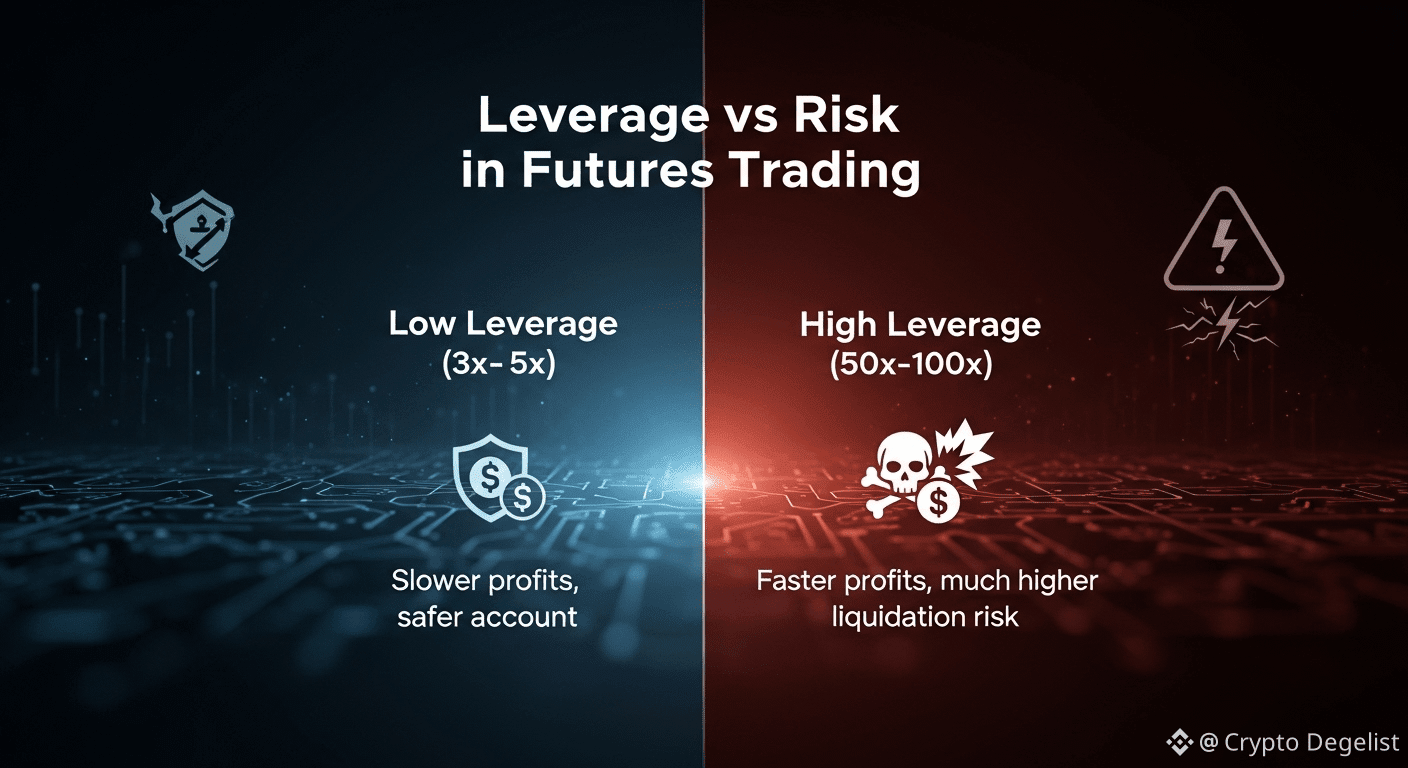 For beginners, high leverage (20x, 50x, 100x) is extremely dangerous.