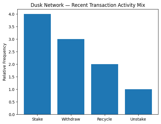Visto isoladamente, os totais de staking e as contagens de transações podem parecer mundanos em comparação com movimentos de preços dramáticos ou parcerias de destaque. Mas para protocolos que buscam sustentar valores mobiliários tokenizados, bolsas reguladas e mercados de capitais on-chain, essas são as métricas que silenciosamente determinam a sobrevivência. Sistemas de liquidação, não narrativas especulativas, definem os vencedores das corridas de infraestrutura financeira. Os dados on-chain da Dusk sugerem uma rede deliberadamente otimizada para esse caminho mais lento e pesado — acumulando segurança, expandindo a participação dos validadores e provando confiabilidade bloco a bloco.