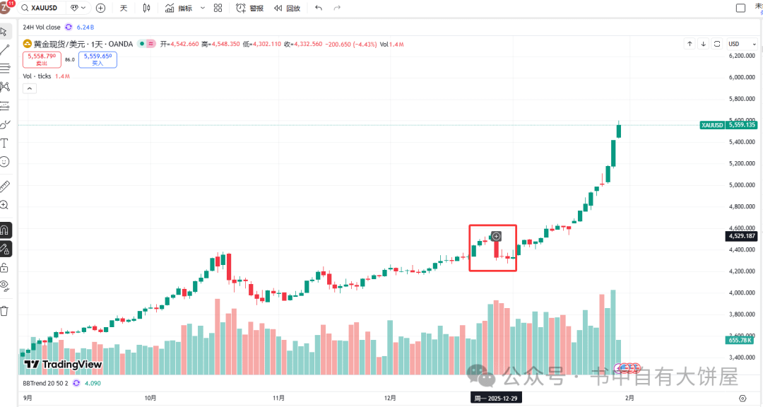 No artigo de 25 de dezembro, (‘Ouro, Prata e Cobre’ todos enlouquecendo, essa cena só apareceu duas vezes na história), eu não julguei quando o ouro atingiria o pico, mas realmente houve uma onda de queda em 30 de dezembro naquele momento. Já era um período de 'clamor'; eu não esperava que essa onda continuasse e se tornasse ainda mais louca! Mas você deve saber que quanto mais louco algo sobe, mais alerta você deve estar!