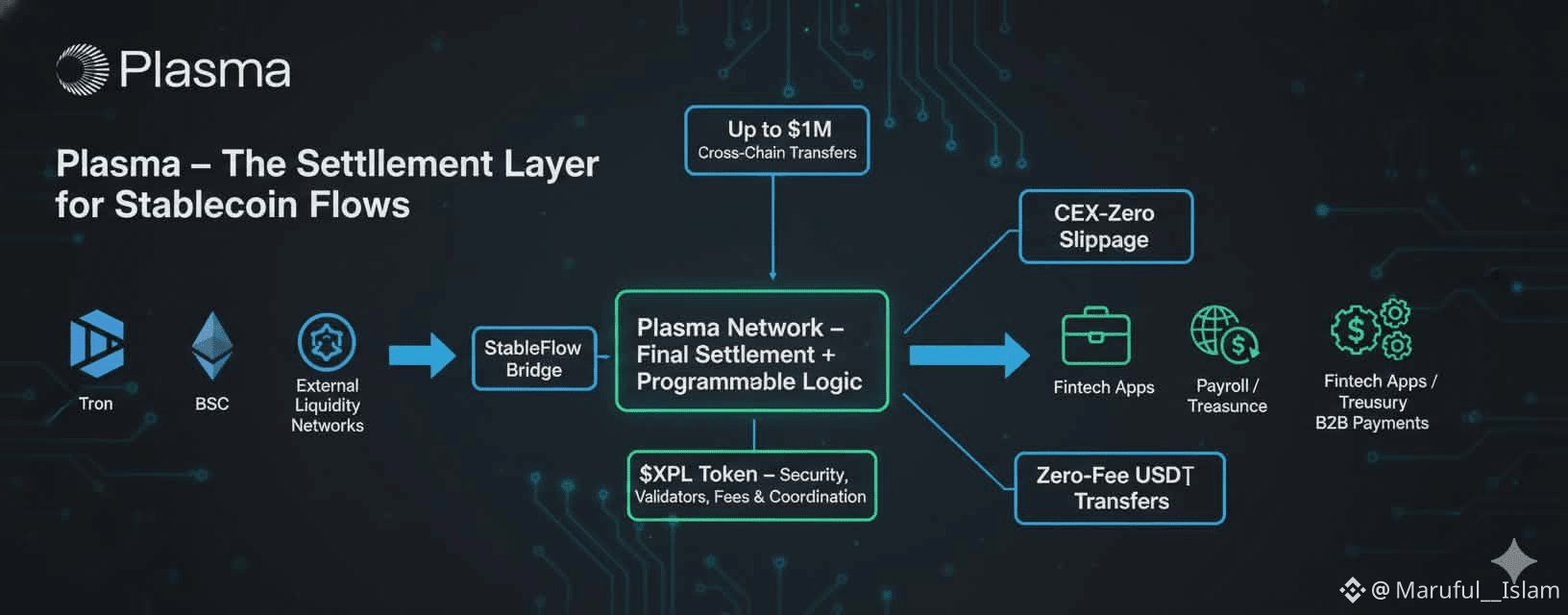 With StableFlow now live, Plasma becomes a destination chain for large-scale stablecoin flows. We’re not talking about $50 transfers — we’re talking about up to $1M USD moving cross-chain with near-zero slippage. That’s the kind of capability enterprises, payment platforms, and fintech apps actually care about.