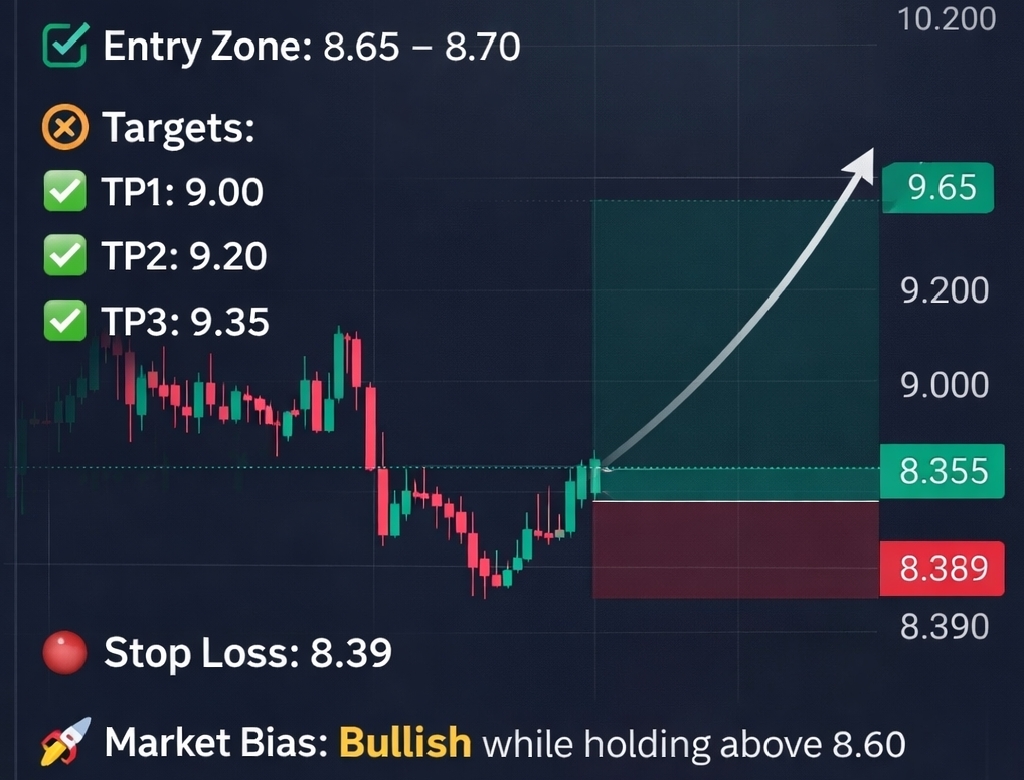 📈 Tendência do Mercado: Altista enquanto mantiver acima de 8.60