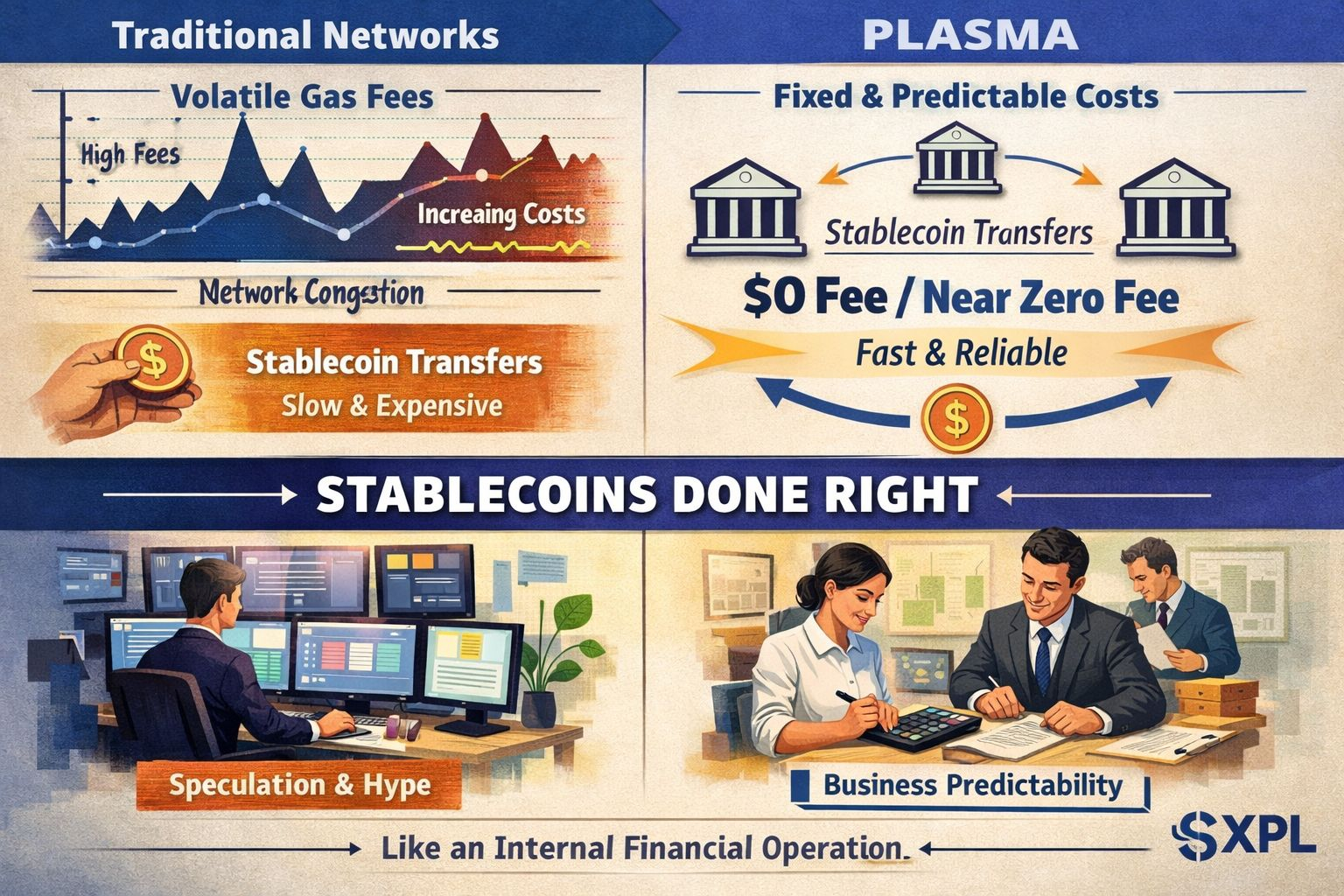 In traditional businesses, predictability is everything. Payroll runs on fixed schedules. Treasury movements are planned in advance. Accounting teams need costs they can forecast, not fees that spike randomly because the network got busy. Plasma is built around that reality. Other than of volatile gas markets, it focuses on fixed and predictable costs, especially for stablecoin transfers.