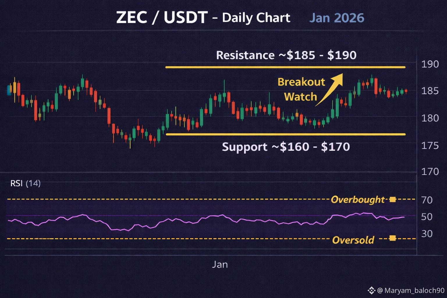 $ZEC Zcash (ZEC), the privacy-focused cryptocurrency, has recently shown consolidated price behavior as broader market volatility persists. After bouncing off its key support zone around $160–$170, $ZEC has attempted to regain some upside, but has faced resistance near the $185–$190 area. This has kept the price mainly range-bound in the short term.