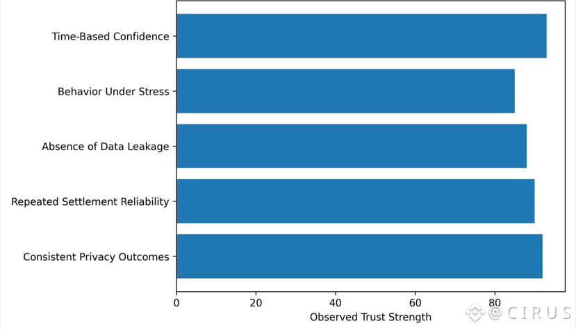 Observational trust is built slowly. It does not come from reading documentation or reviewing architecture diagrams. It comes from watching a system behave over time. In financial environments, this means seeing how transactions settle, how privacy is maintained, how failures are handled, and how disputes resolve.