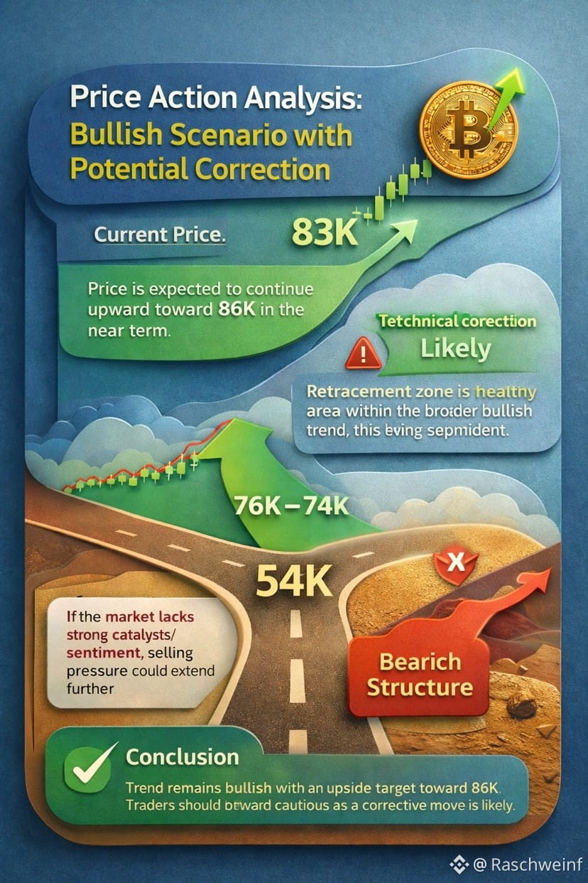 The short- to medium-term trend remains bullish, with an upside target toward 86K. However, traders and investors should remain cautious, as a corrective move is still likely if the market loses positive momentum and supporting catalysts.