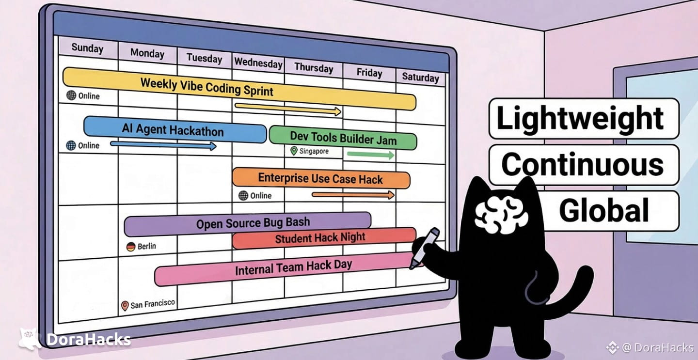 DoraHacks(dorahacks.io) helps developer tools companies and enterprises achieve "hackathons everywhere, all the time" through automated hackathon infrastructure and DevRel tooling. Submission management, judging workflows, prize distribution, community engagement—all streamlined so you can focus on the builders, not the operations.