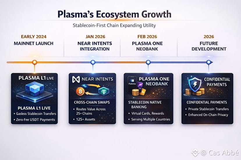 Em 23 de janeiro de 2026, o Plasma se tornou o primeiro protocolo de liquidez baseado em Intenções NEAR, que conecta mais de 25 blockchains e mais de 125 ativos. Isso implica que o USDT e o XPL do Plasma agora podem ser trocados e roteados através de redes significativas com facilidade para aumentar ainda mais a utilidade real e a profundidade de liquidez, mais do que a própria cadeia do Plasma.