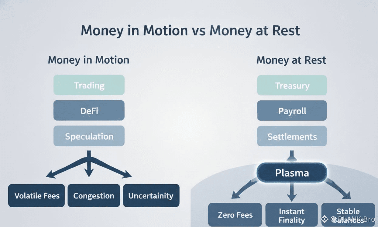 Most blockchain discussions obsess over motion — faster transactions, higher throughput, and more on-chain activity. But Plasma introduces a more meaningful financial question: why does money not move? Instead of optimizing for constant flow, Plasma studies financial stillness — the reality that most money spends its time sitting idle.