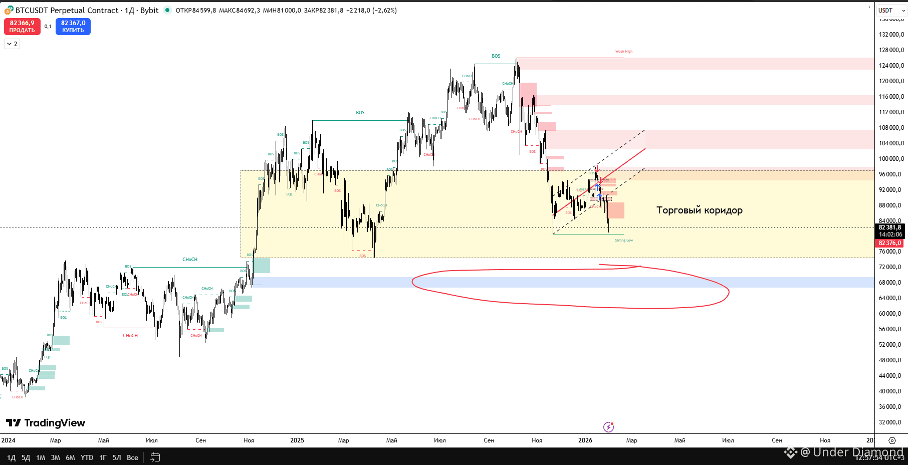 Почему я считаю, что будет именно так: этот блок ордеров находится в зоне цены, куда BTC должен опуститься для начала нового, крупного цикла роста. Про свою стратегию я уже писал. Критики, естественно, скажут, что так не будет, но потом будут стучать по клавиатуре и писать, что «ракета» улетела без них.