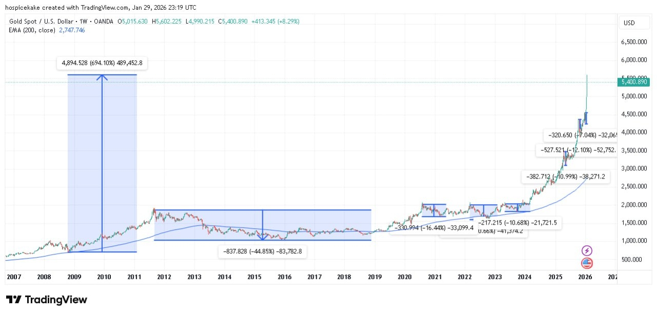 Desde 2024, o Ouro apresenta um desempenho de cerca de +214 %, com +65 % nos últimos seis meses. Uma dinâmica impressionante para um ativo historicamente percebido como lento, que confirma seu papel central em tempos de incerteza monetária e geopolítica. Mas esse desempenho não foi linear: entre 2012 e 2019, o ouro passou por quase 8 anos de consolidação, com uma queda máxima de -44 %, testando a paciência dos investidores de longo prazo. Em todo o ciclo desde 2010, o ouro acumula cerca de +675 %.