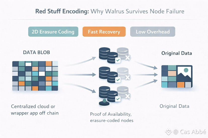 Walrus is constructed based on a special erasure-coding method known as Red Stuff. The official description refers to it as a two-dimensional (2D) erasure-coding protocol, which provides high availability and efficient replication and rapid recovery.