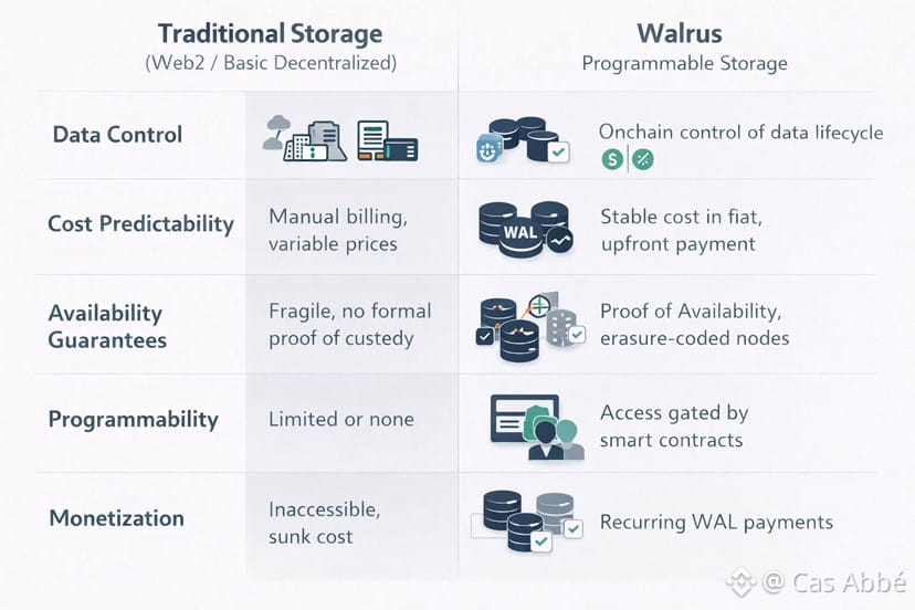 The point is straightforward: once storage is programmable and verifiable, it can be rented, shared, gated and monetized with rules, just as with any other on-chain asset. That is why Walrus can be referred to as programmable storage. It is not just a question of data safety it is also a question of making data a dependable primitive to contracts and apps.