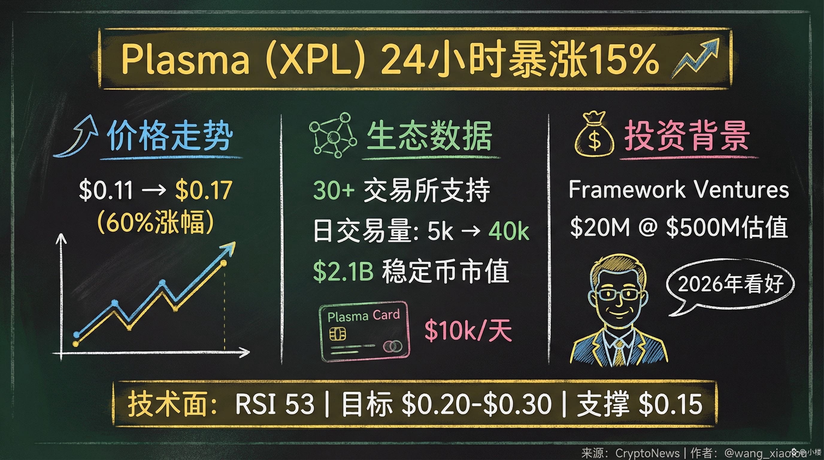 不是因为它有多火,恰恰相反——在一片山寨币狂欢的时候,XPL 一直在底部磨磨蹭蹭,从 12 月的 爬到现在的0.17,涨幅看起来也就 60% 左右。但就在昨天,它突然暴涨了 15%,这让我重新审视了一些东西。