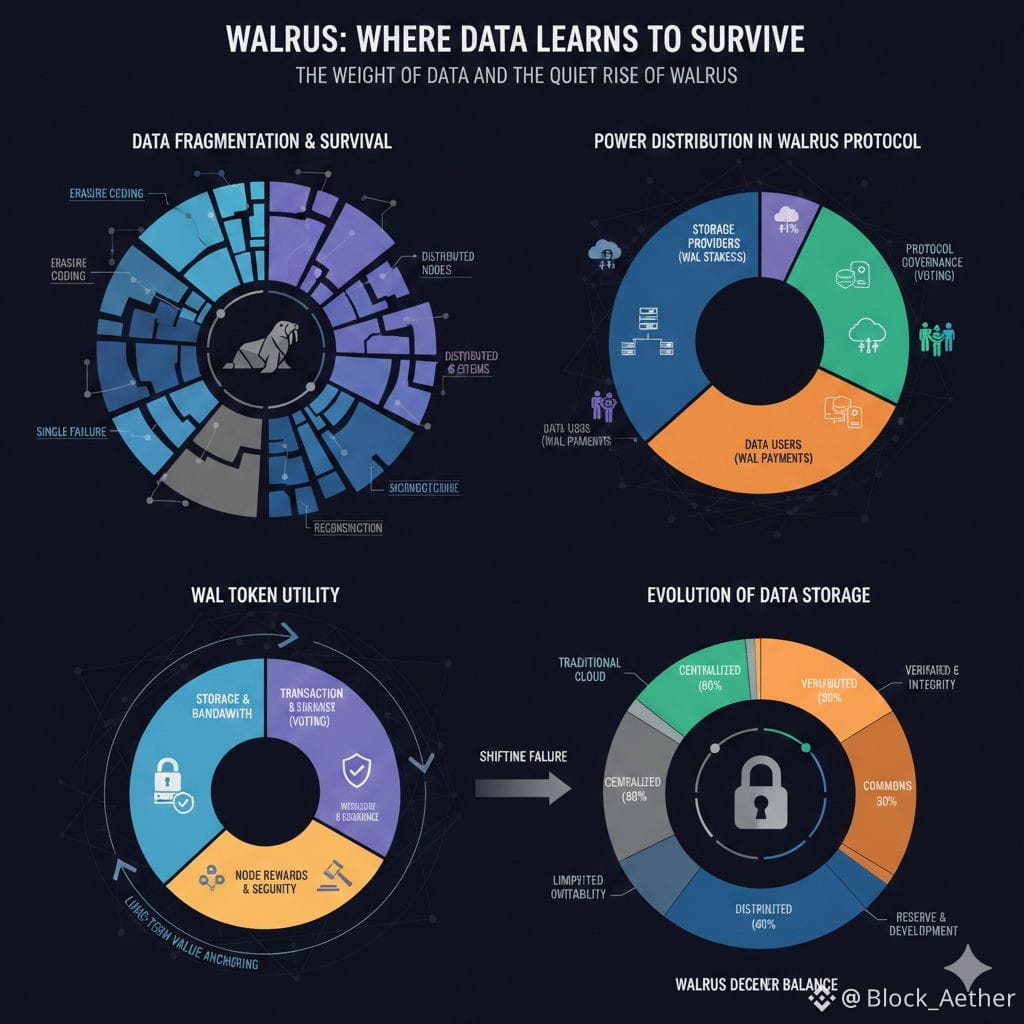 At first glance, Walrus looks like infrastructure. Quiet. Unassuming. A decentralized storage and data availability protocol running on the Sui blockchain, powered by a token called WAL. But infrastructure is where power hides best. Roads decide where cities grow. Electrical grids decide who lives in light. Storage decides what survives.