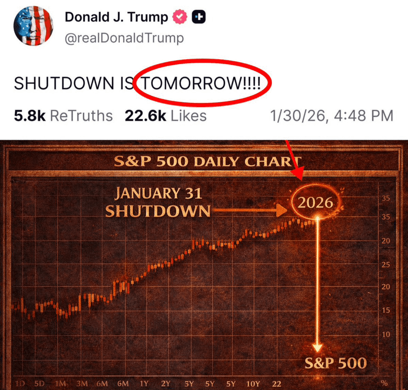 🇺🇸 O fechamento do governo dos EUA confirmado às ⏰ 12:00 AM ET amanhã.