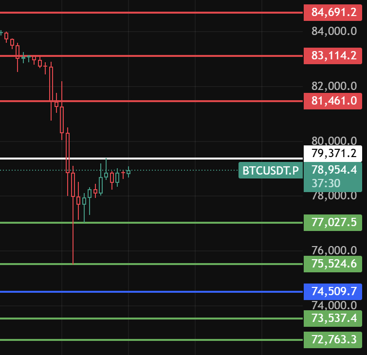 Hoje, observe 79370 para o Bitcoin. Somente se manter acima desse nível por 1-2 horas é que começará a recuperação. Os níveis de resistência são 81460-83110-84690!