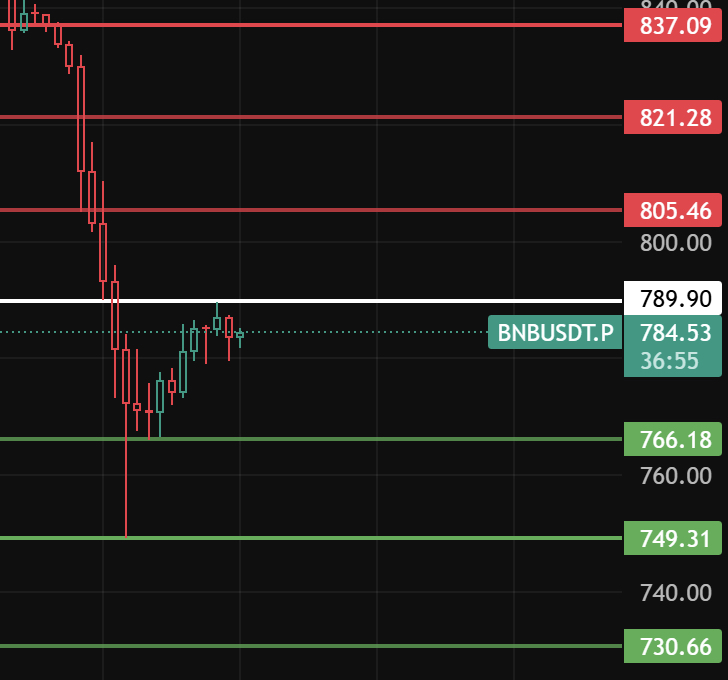 Hoje, observe 789 para o BNB. Somente se manter acima desse nível por 1-2 horas é que começará a recuperação. Os níveis de resistência são 805-821-837!